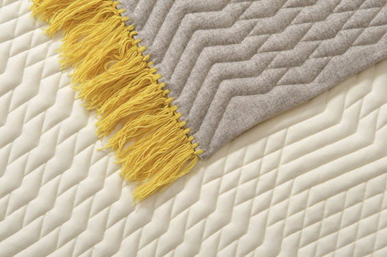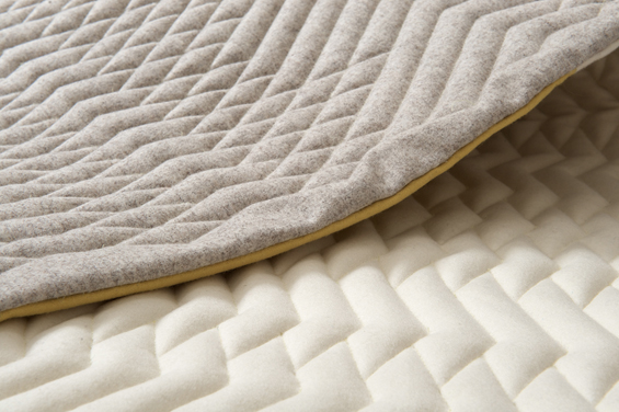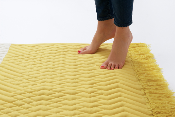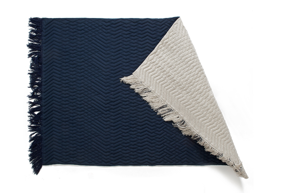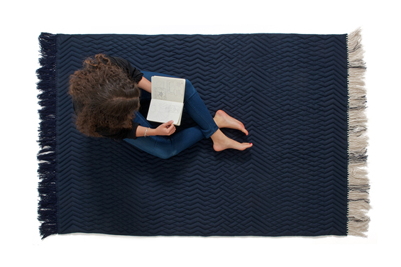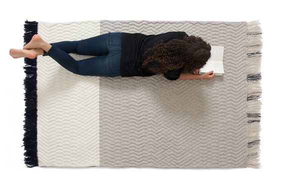 Inspired by the soft structure marked in the sand, the carpet DUNE is constructed in a way that brings out a three-dimensional pattern: The components are quilted together forming a structured surface with a layered depth. Main material is woven loden, a soft and durable woollen cloth.The intensity of the shadow-lines varies depending on the light.